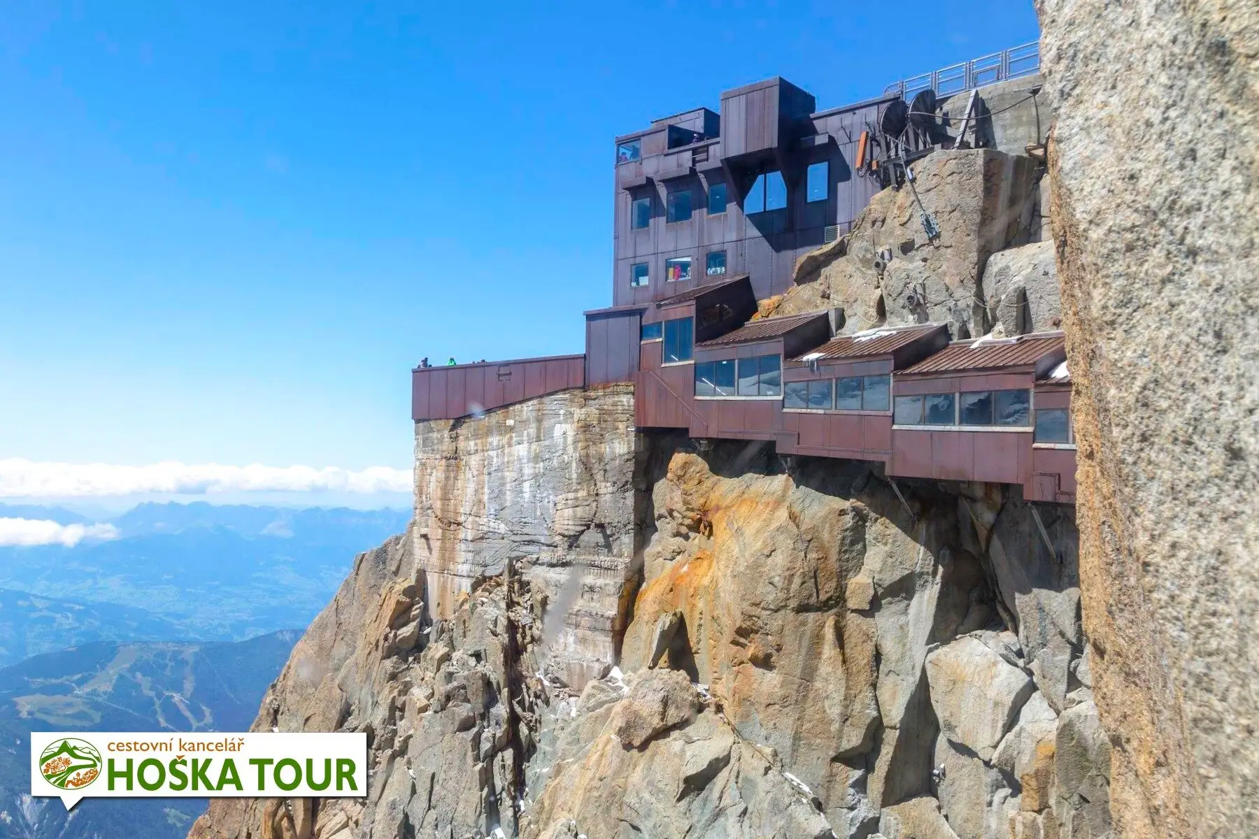Aiguille du Midi – vyhlídkový vrchol u hory Mont Blanc nad Chamonix ve Francii