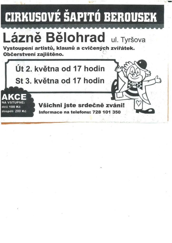 Vystoupení cirkusu Enrico Berousek se uskuteční v úterý 2.5. a ve středu 3.5. vždy v 17 hodin v Tyršově ulici. Klasický český rodinný cirskus. Jeho vystoupení […]