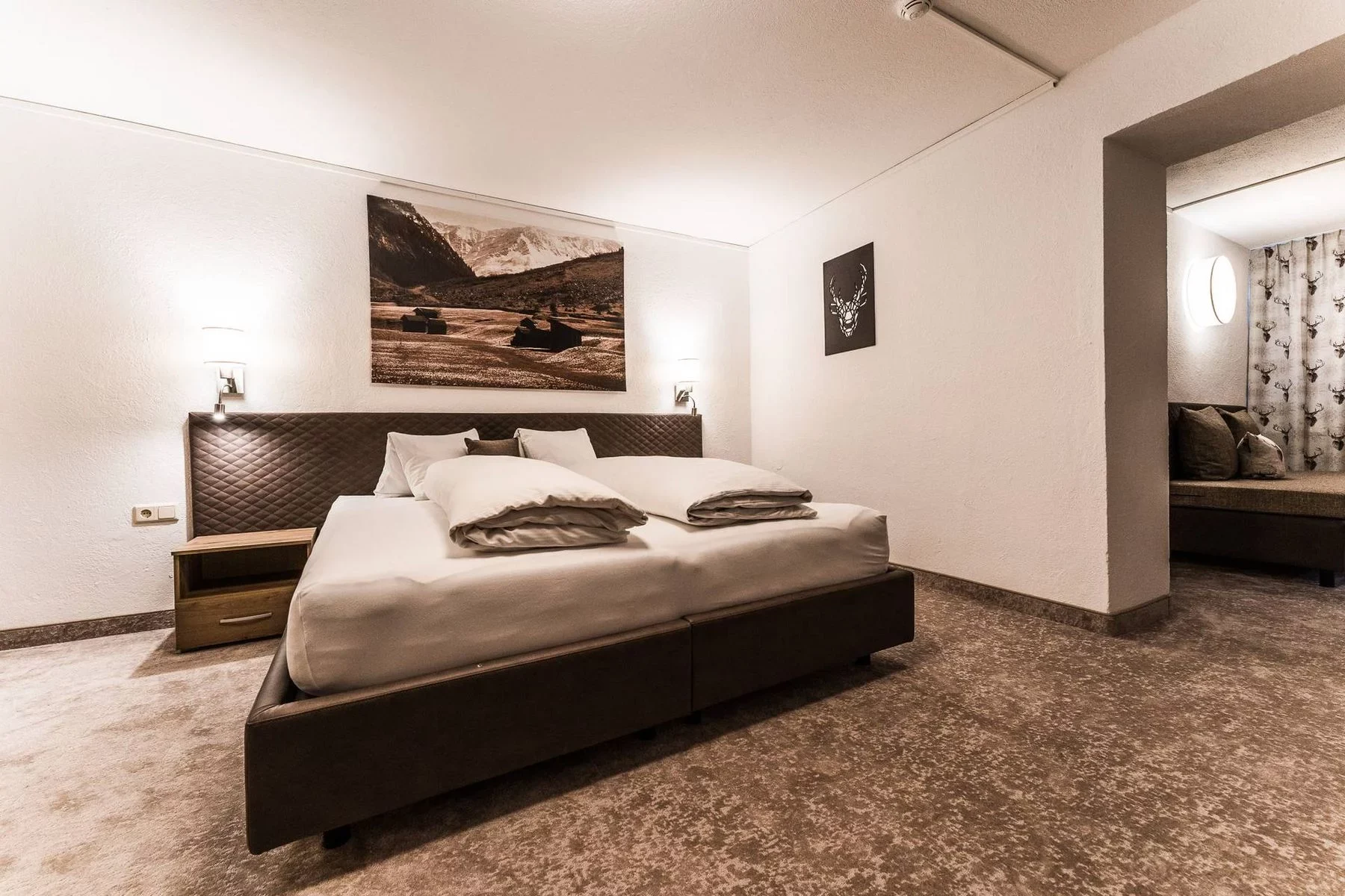 Ubytování v hotelu má tradiční alpský charakter. Pokoje jsou zařízeny v příjemném dřevěném stylu a poskytují útulné zázemí po celodenním programu. Každý pokoj má vlastní koupelnu se sprchou a toaletou, nechybí plochá televize, telefon ani vysoušeč vlasů. Většina pokojů je orientována tak, aby poskytovala krásné výhledy do horské krajiny, často i z vlastního balkonu.