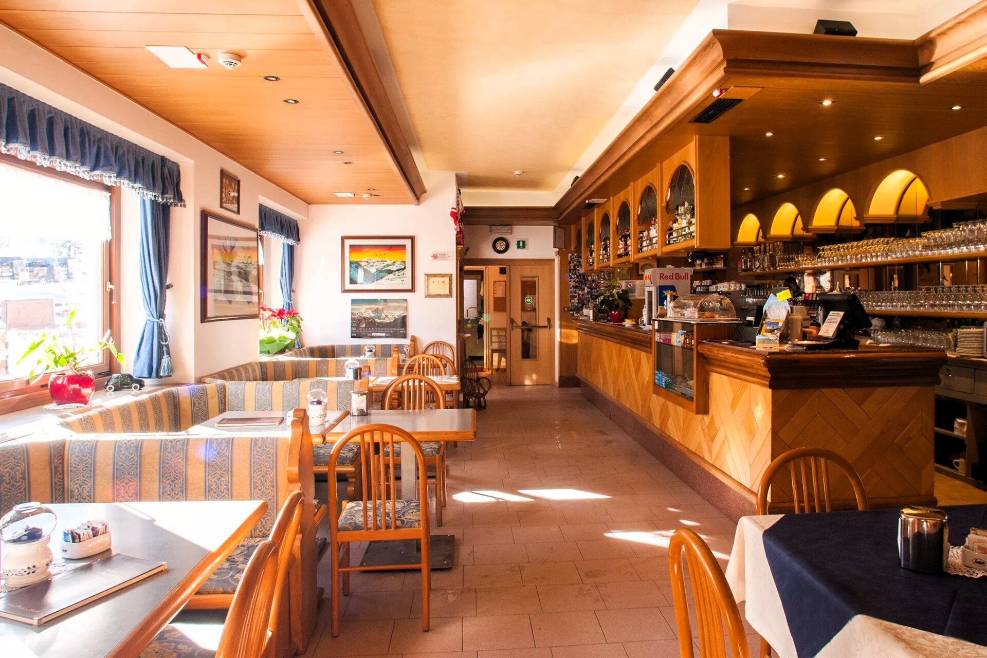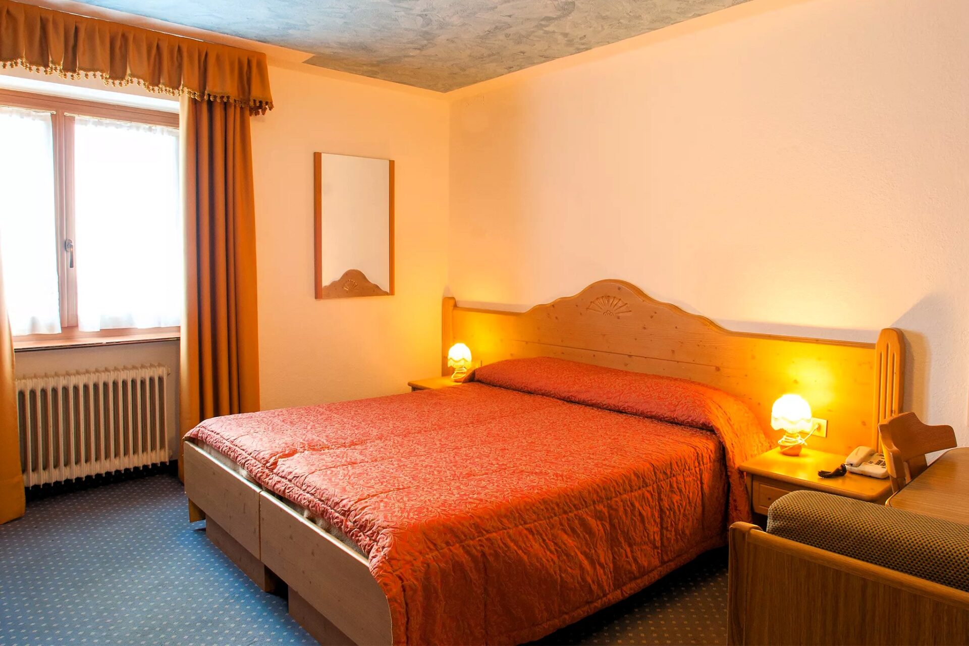 Interiér hotelu odráží klasický alpský styl, ve kterém převažuje dřevo, teplé barvy a funkční vybavení, které hostům vytváří pocit útulnosti i bez zbytečných přehnaných dekorací. Pokoje jsou různých velikostí, od jednolůžkových až po vícelůžkové, a většina z nich má balkon s výhledem na okolní horské štíty.
