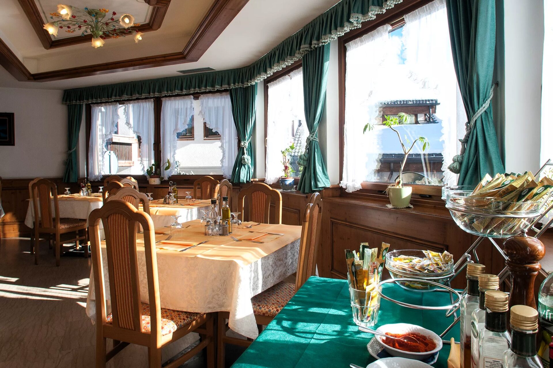 Součástí hotelu je i restaurace a pizzerie, kde se podávají snídaně formou bufetu i večeře s výběrem tradičních italských a alpských pokrmů. Hosté zde mohou ochutnat typická jídla regionu Veneto i speciality z Dolomit, a to v příjemné a neformální atmosféře. K dispozici je také bar, terasa a společenské prostory, které lákají k večernímu posezení po dni stráveném venku. V přilehlé Dependanci (vedlejší budově) je wellness se saunou, tureckou parní lázní a relaxačními sprchami.