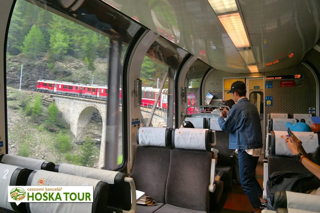 Viadukt si však lze vychutnat nejen z okna vlaku. K mostu vede krátká pěší cesta a návštěvníci mohou sledovat projíždějící soupravy přímo z blízkosti oblouků, či stát přímo uprostřed nechat si projíždějícím vlakem zamotat hlavu. Fotografové zde často čekají na okamžik, kdy se červená souprava stočí do téměř dokonalého kruhu. Oblast Engadinu a okolí Svatého Mořice je navíc možné poznat pohodlně a bez starostí v rámci tematicky laděného zájezdu za vlaky i horami okolo Svatého Mořice, který propojuje železniční zážitky s panoramaty alpských vrcholů i návštěvou ikonických míst Rhétské dráhy.