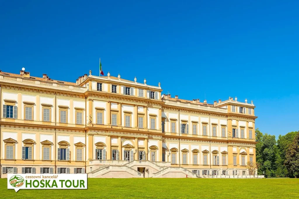 Město Monza leží severně od Milána a je známé nejen závodním okruhem, ale především monumentálním královským sídlem Reggia di Monza. Palác byl vystavěn v letech 1777–1780 na příkaz arcivévody Ferdinanda Habsburského jako letní rezidence habsburského dvora v Lombardii. Autorem projektu byl architekt Giuseppe Piermarini, který navrhl stavbu v klasicistním stylu inspirovaném vídeňským Schönbrunnem. Rozsáhlý komplex má přes 700 místností a jeho reprezentativní sály i soukromé apartmány odrážejí život aristokracie 18. a 19. století.