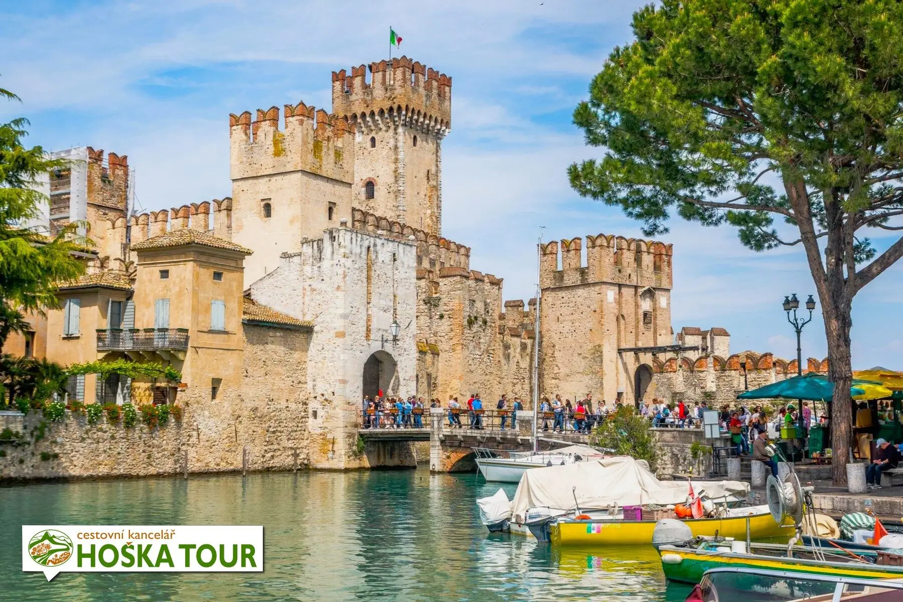 Dominantou vstupu do starého města je Castello Scaligero di Sirmione, jeden z nejzachovalejších vodních hradů v severní Itálii. Současná podoba pochází ze 13. století, kdy jej postavil veronský rod Scaligerů jako strategickou pevnost chránící jižní část jezera. Hrad je unikátní tím, že je téměř celý obklopen vodou a v jeho areálu se nachází i opevněný přístav – vzácný příklad středověkého vojenského přístaviště. Návštěvníci mohou vystoupat na věž a projít se po hradbách, odkud se otevírá působivé panorama poloostrova i široké hladiny Gardy.