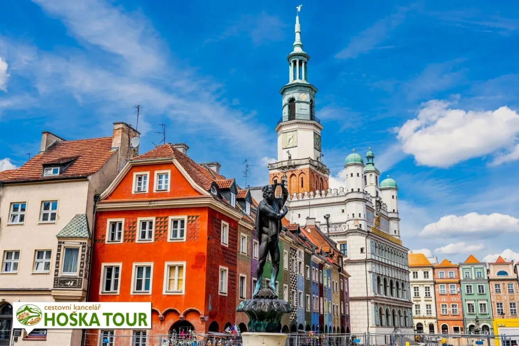 Historické centrum města Poznań patří k nejpůsobivějším městským celkům v Polsku. Srdcem je Stary Rynek – rozlehlé čtvercové náměstí o rozměrech přibližně 140 × 140 metrů, založené ve 13. století při udělení magdeburského práva. Barevné renesanční a barokní měšťanské domy vytvářejí harmonický rámec, uprostřed kterého stojí reprezentativní radnice z poloviny 16. století. Každý den v poledne se na její věži objevují slavní kozlíci, kteří do sebe symbolicky trkají rohy – tradice, která přitahuje návštěvníky už po generace. Centrum působí kompaktně a přehledně, takže jej lze pohodlně projít pěšky během několika hodin.