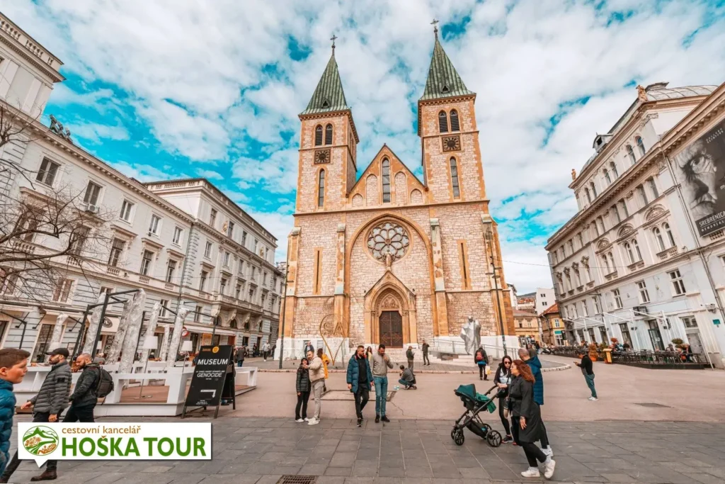 Katedrála Srdce Ježíšova (bosensky Katedrala Srca Isusova) je hlavním katolickým chrámem Sarajeva a sídlem arcibiskupství vrhbosenského. Byla postavena v letech 1884–1889 podle návrhu architekta Josipa Vancaše, v období rakousko-uherské správy. Stavba je inspirována novogotickým stylem, zejména pařížskou bazilikou Sacré-Cœur, a její dvě štíhlé věže vysoké přibližně 43 metrů patří k výrazným dominantám městského centra. Katedrála se nachází na pěší zóně Ferhadija, která symbolicky spojuje orientální část města s jeho středoevropskou architekturou.
